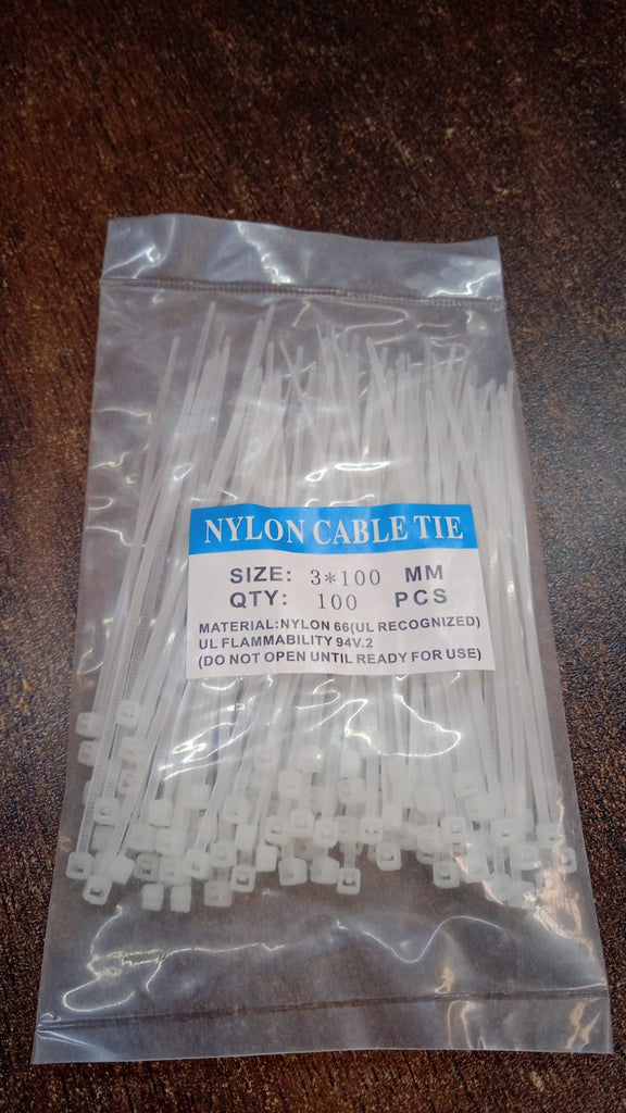 3×100 MM Nylon Self Locking Cable Ties, Heavy Duty Strong Zip Wire Tie. Pack of 100pc
